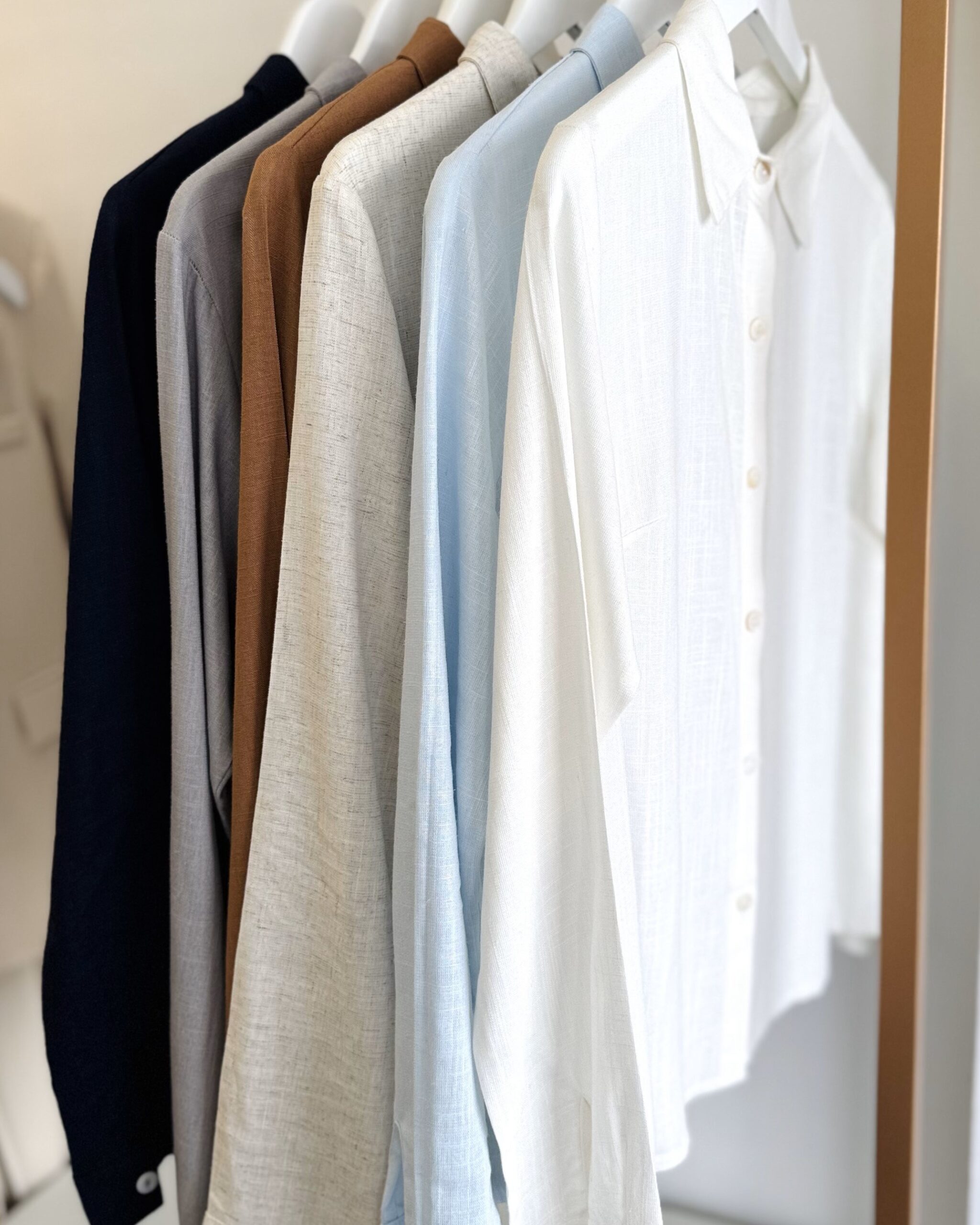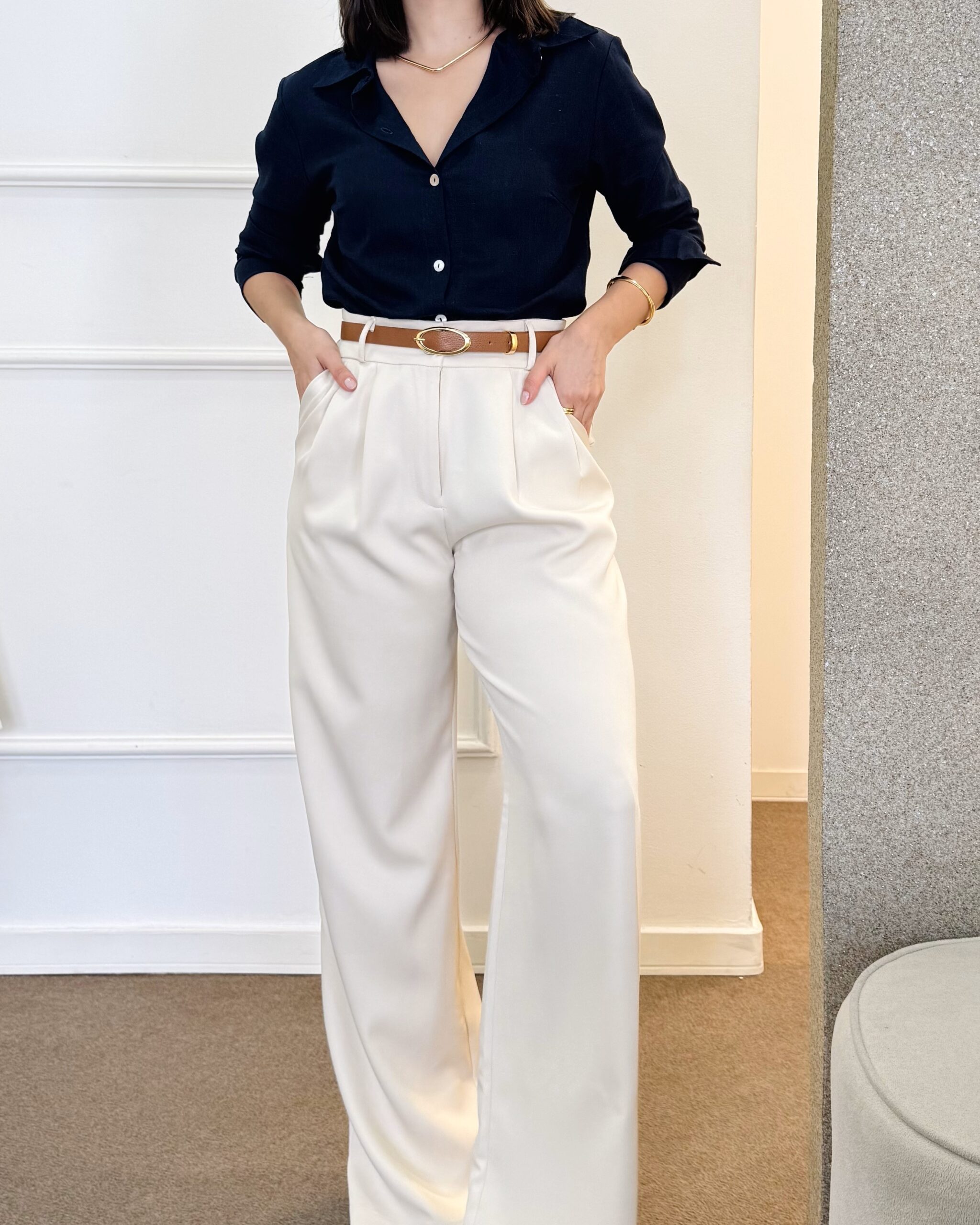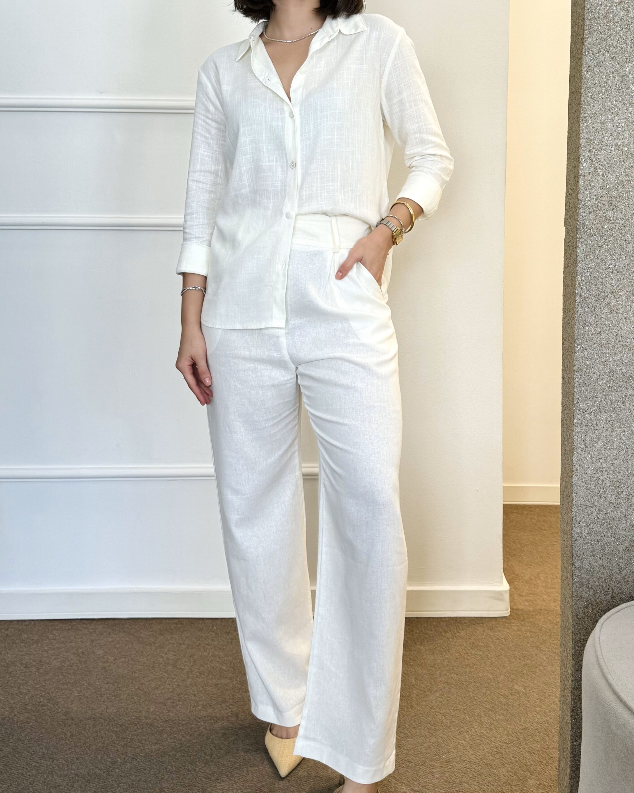 Camisa em cambraia de linho com modelagem slim e botões frontais em madrepérola.
